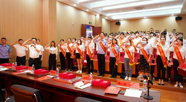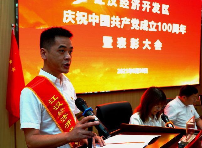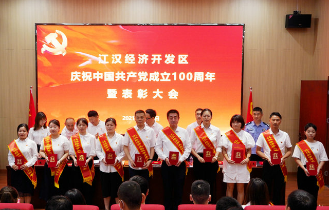 正值中國共產黨建黨100周年之際,江漢經濟開發區在2021年6月30日上午,隆重舉辦了慶祝建黨100周年暨“兩優一先”評選表彰大會,會議在園區咸亨賽孚實業有限公司會議室召開。公司黨支部書記、副總經理金巍,公司支部副書記、董事長助理劉宗寶應邀參會。